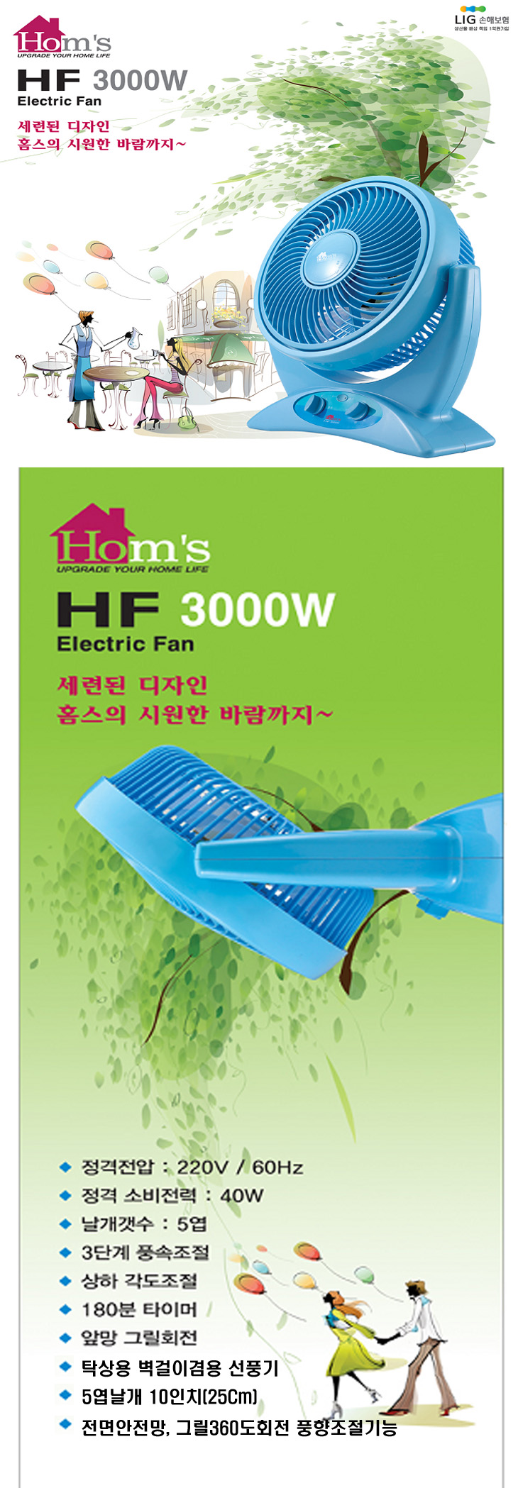 홈스(Home`s) 10형 탁상용/벽걸이 겸용 박스팬 타이머 선풍기[HF-3000W]
