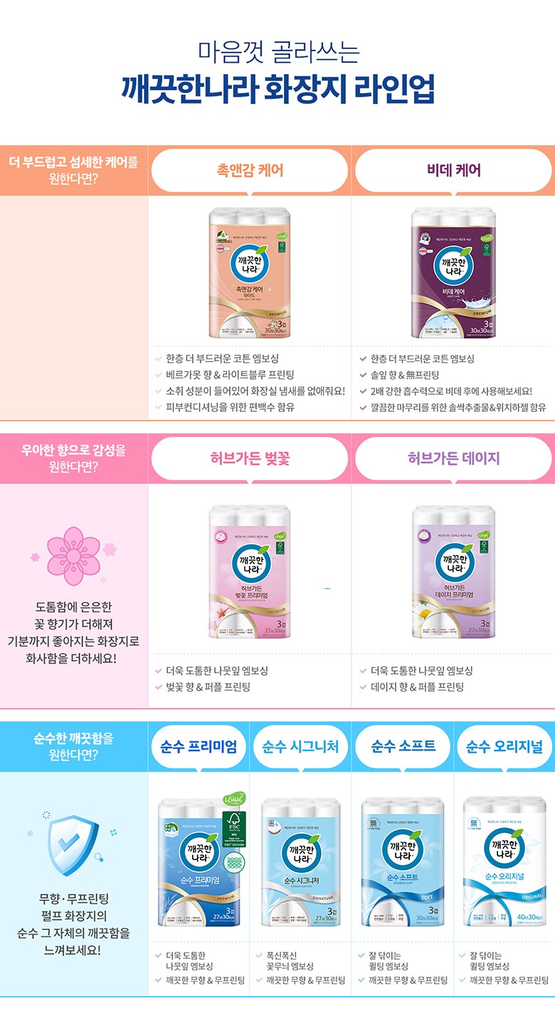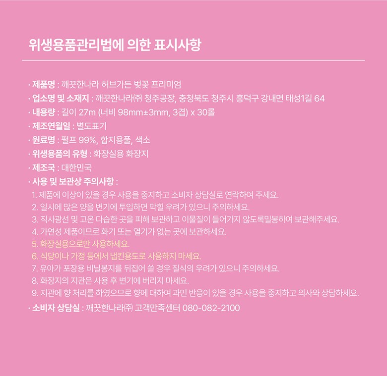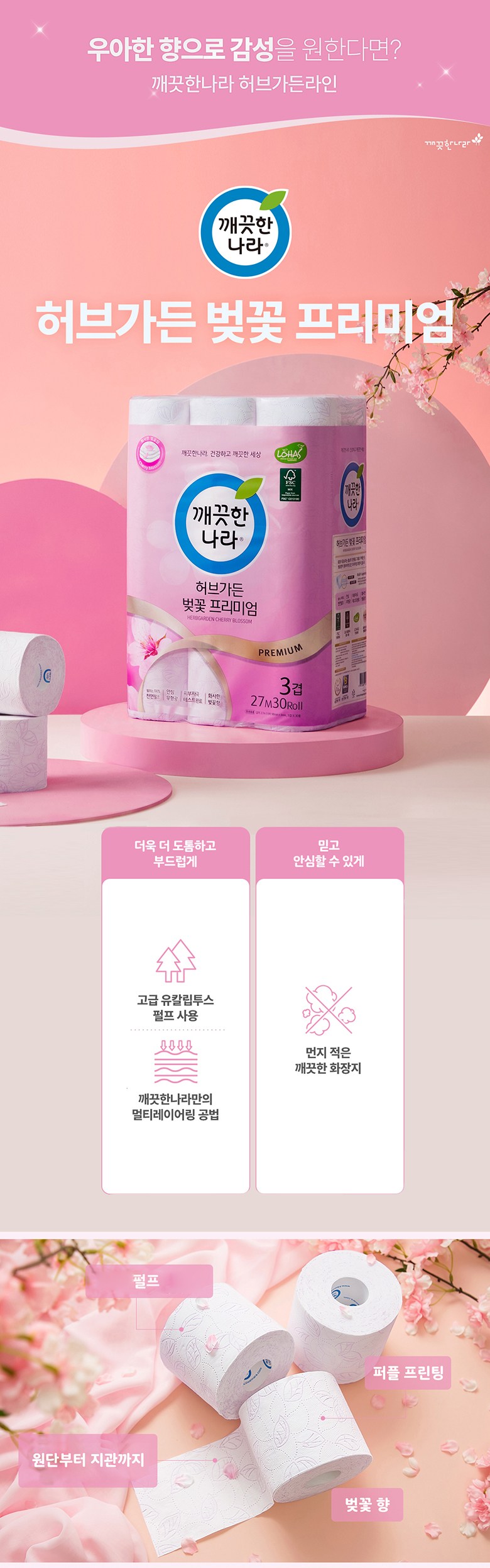 깨끗한나라 벚꽃 프리미엄 3겹 화장지 27m x 30롤