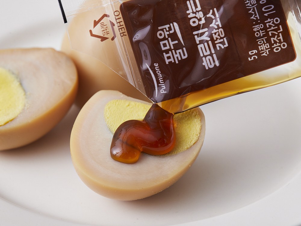 풀무원에서 나온 구운란이에요. 구운란은 퍽퍽할 것이라는 편견과 다르게, 부드럽고 촉촉한 식감이 일품이랍니다. 고소한 구운란에 잘 어울리는 간장소스도 동봉되어 있어요. 잼처럼 흐르지 않는 짭쪼름한 간장소스로 간편하게 즐길 수 있죠.