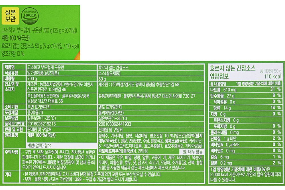 풀무원 흐르지않는 간장소스와 고소한구운란,구운계란 20구