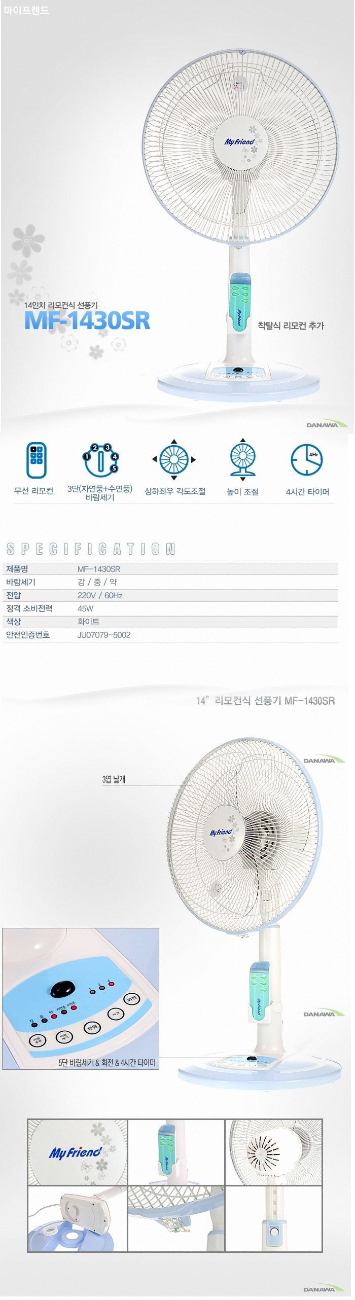 마이프랜드 14형 35cm 타이머 좌석용 가정용 리모콘 선풍기[MF-1430SR]