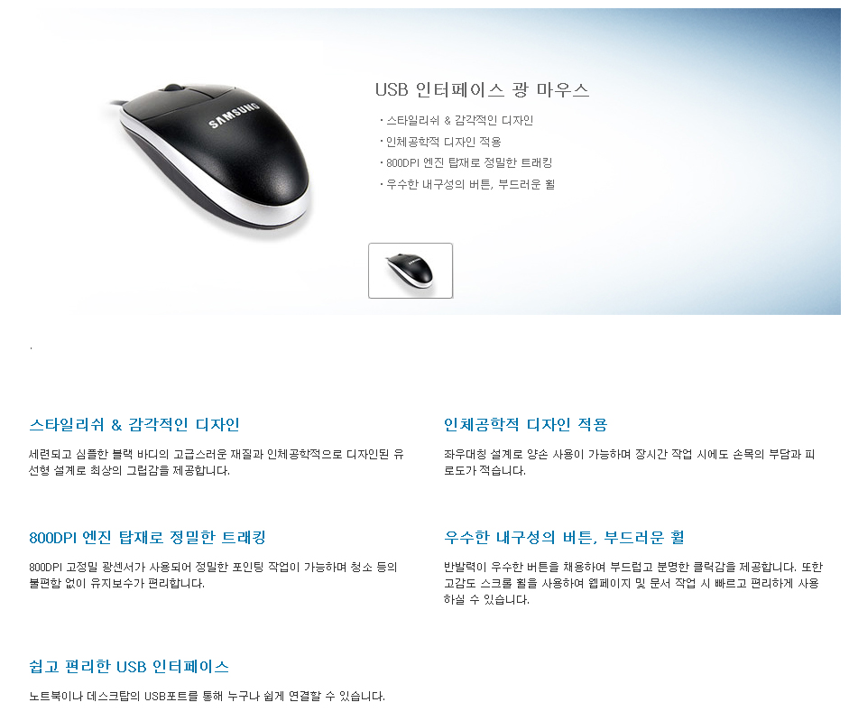 [삼성전자] SMH-210UB 블랙 마우스(800dpi/USB)
