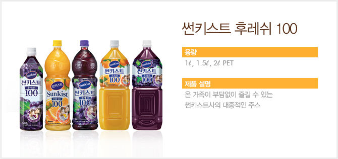 해태 썬키스트 후레쉬(오렌지25%+포도50%)PET 1.5L*2개입