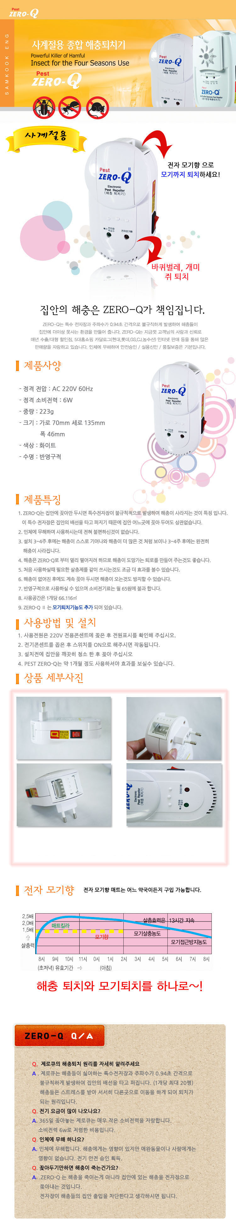 [개미,바퀴벌레,쥐,벌레 박멸!]제로큐 초음파+모기훈증 사계절 해충퇴치기[Q-2]
