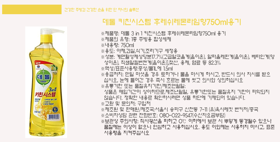 데톨 키친시스템 스위트오렌지&베리향(750ml) 용기