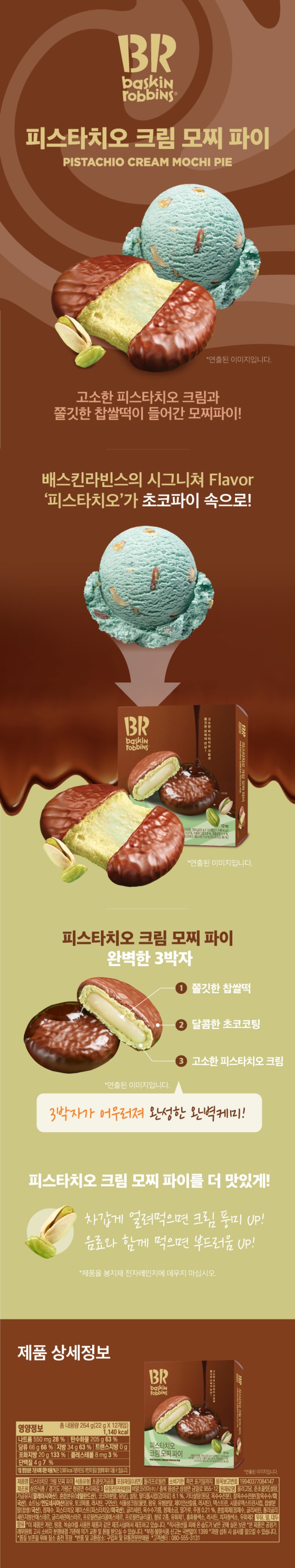 (신상품) 배스킨라빈스 피스타치오 크림 모찌파이 264g 12개입