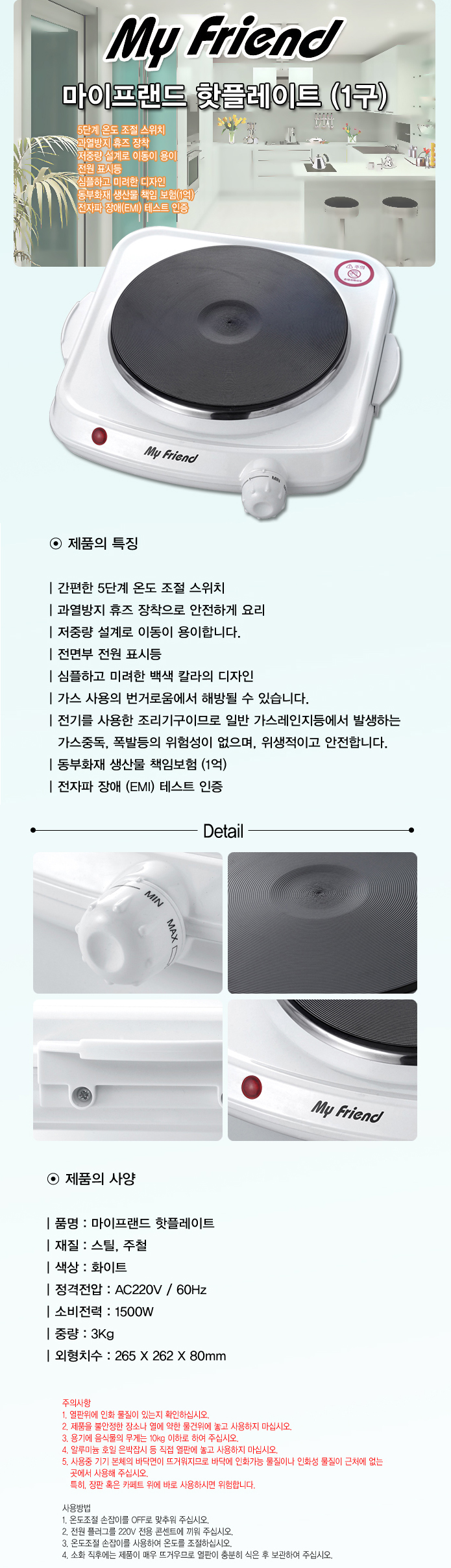 마이프랜드 5단계 온도조절 과열방지 1구 핫플레이트[MF-11P]