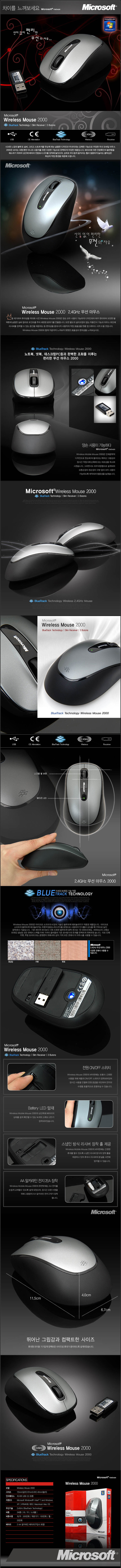 [마이크로소프트] 무선 블루트랙 마우스 2000(4000dpi/USB)
