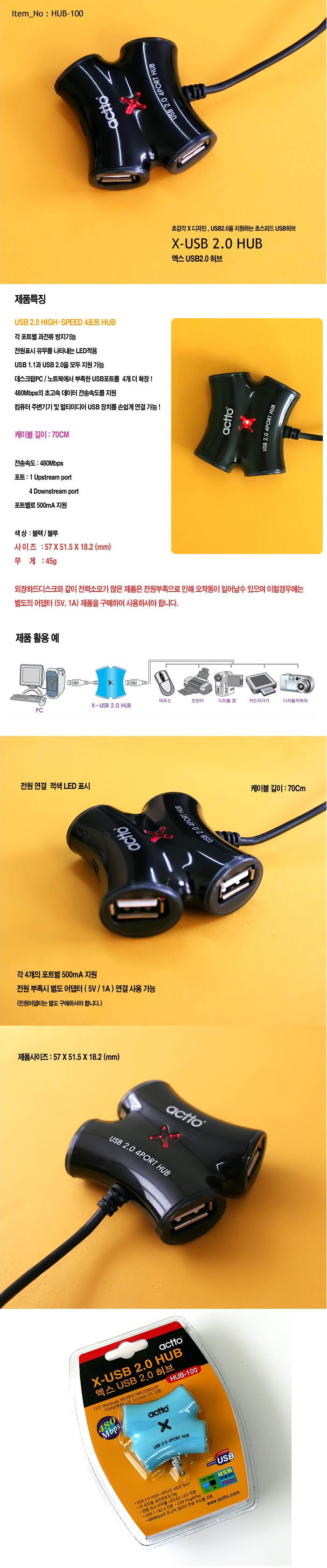 [Actto] HUB-100 4포트 USB허브 2.0 블랙