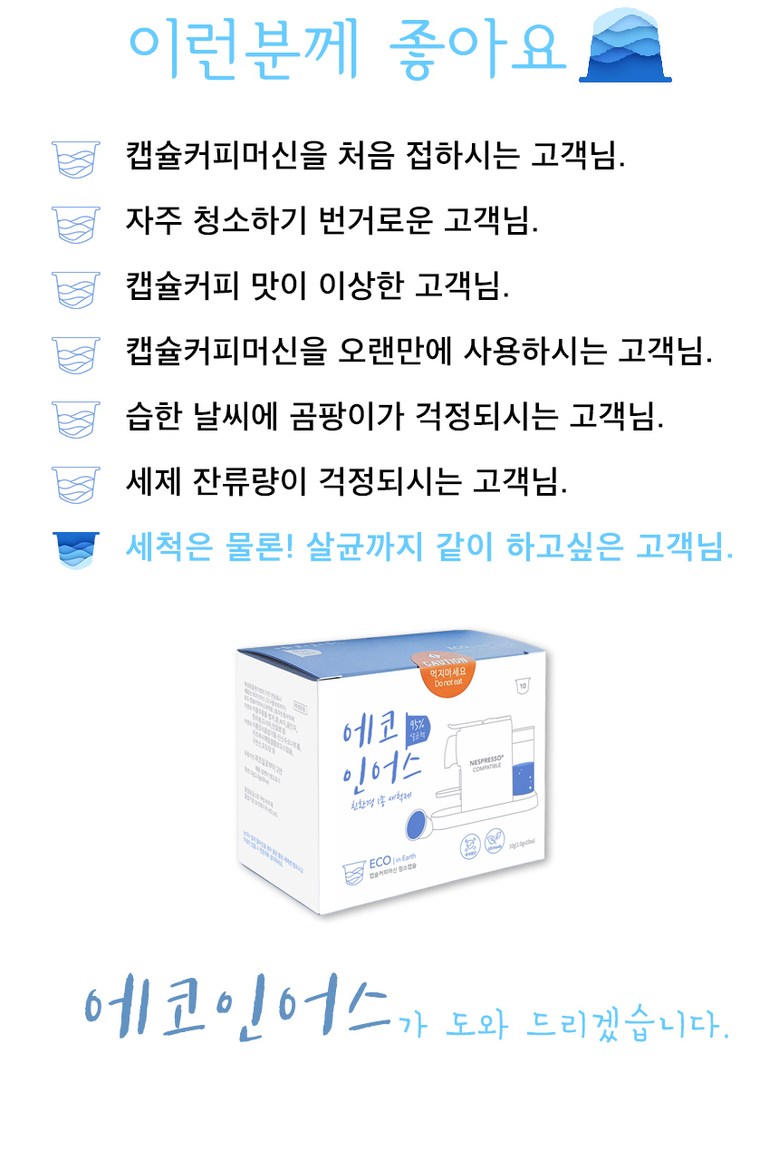 에코인어스 네스프레소 호환 커피머신 청소 세척캡슐 10개입