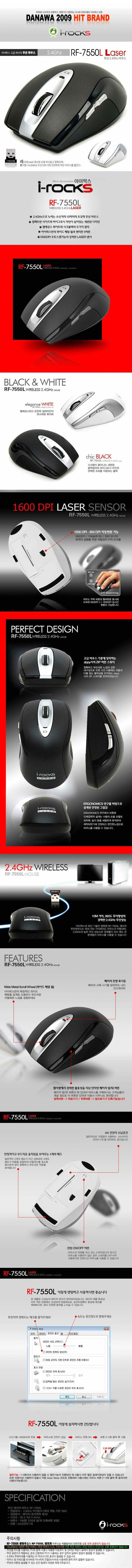 [아이락스] RF-7550L 무선 레이져 마우스 화이트(1600dpi/USB)