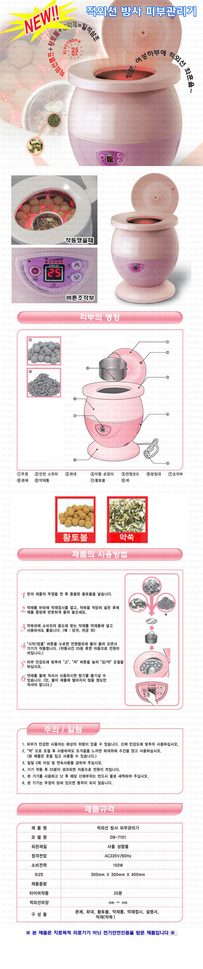 ★필립스 램프적용★동보 애플 황토볼 프리미엄 디지털 원적외선 전통 한방 좌훈기[DB-7101]