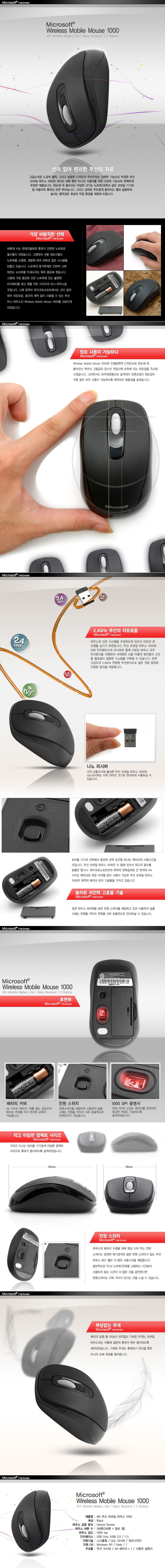 [마이크로소프트] 무선 모바일 마우스 1000 블랙(1000dpi/USB)
