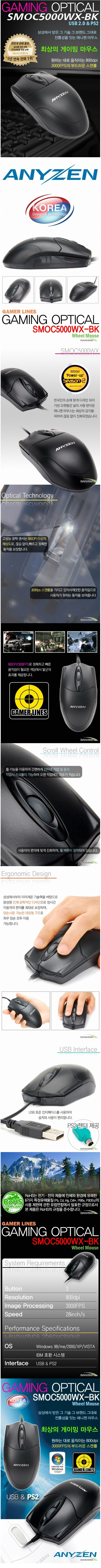 ANYZEN] 유선 광마우스 SMOC5000WX-BK 콤보 블랙(무지박스)