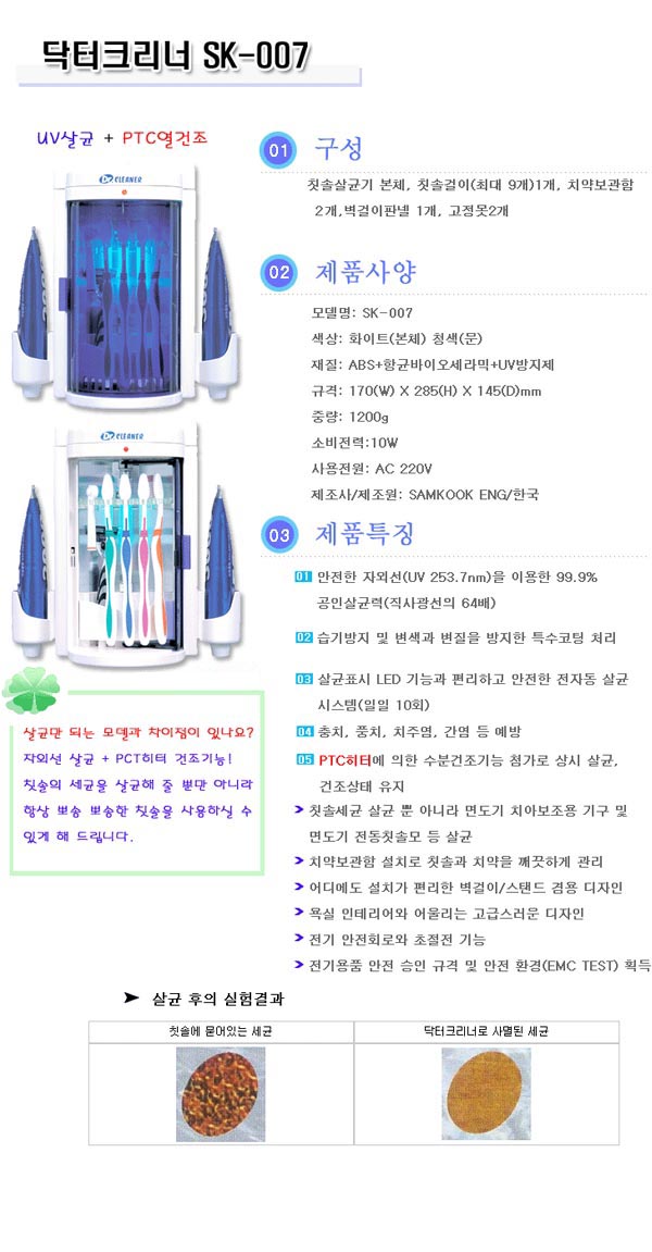 Dr.닥터크리너 신개념 특허 칫솔살균기[SK-007]