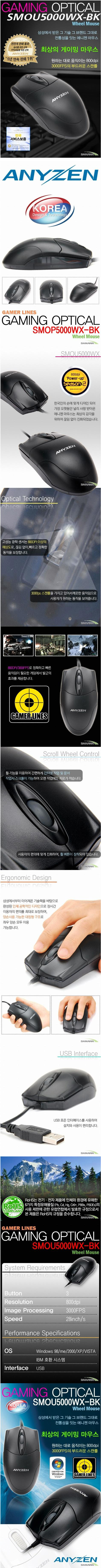 [ANYZEN] SMOU5000WX-BK 블랙 마우스(800DPI/USB)