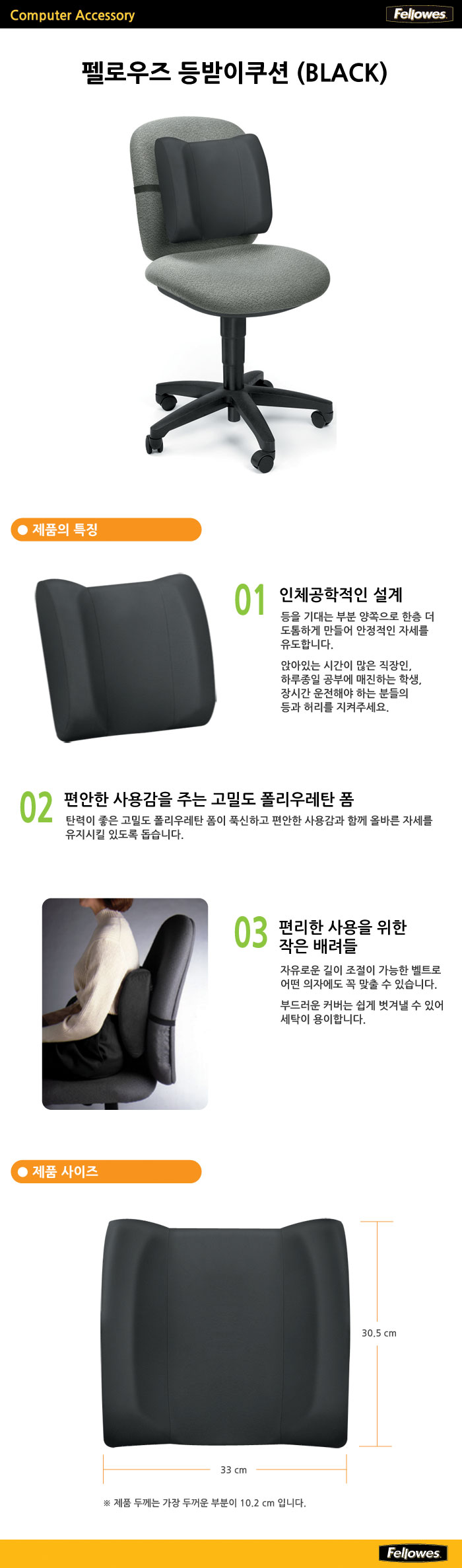 펠로우즈 OfficeSuit 등받이쿠션(305*330*102mm) 91905