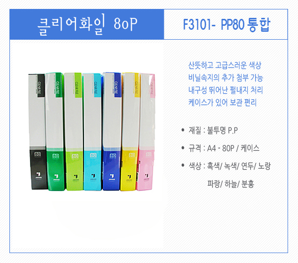 진홍 PP클리어화일 A4(80매) 흑색 #JF781