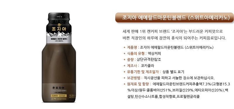 조지아에메랄드마운틴블렌드(스위트아메리카노)250ml병