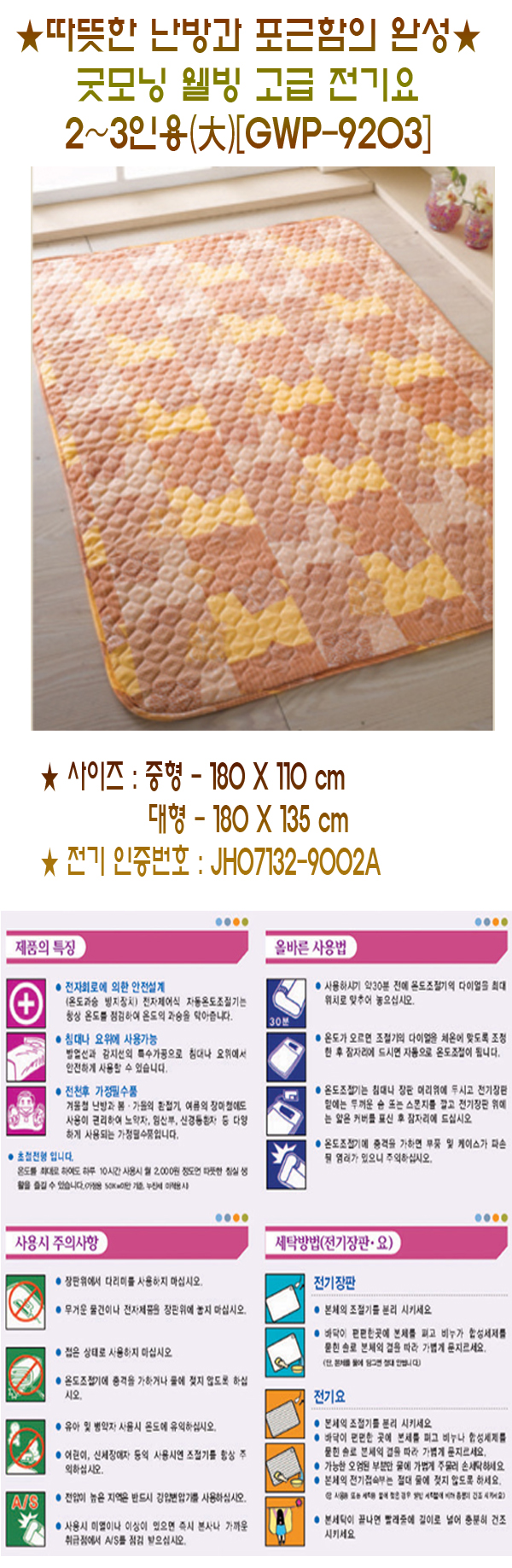 굿모닝 웰빙 고급 전기요 2~3인용(大)[GWP-9203]