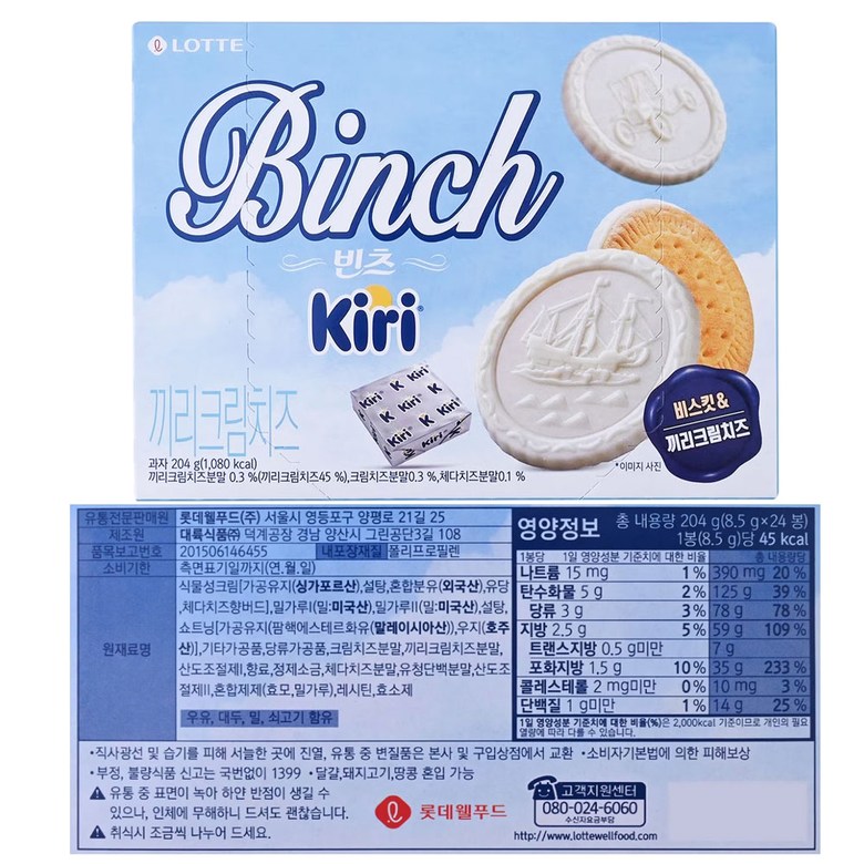 5600 롯데 빈츠 kiri 크림치즈 204g
