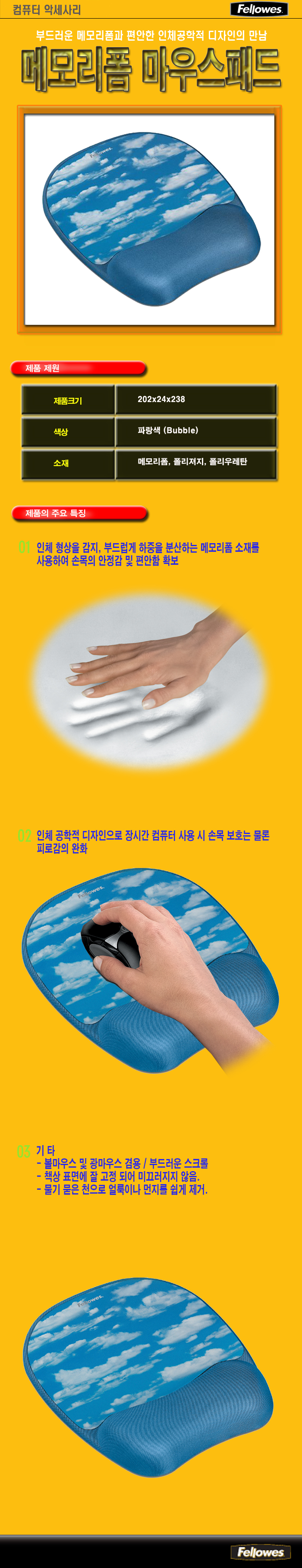펠로우즈 메모리폼 마우스패드(202*238*24mm) 스카이 91759