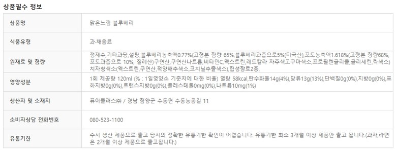 퓨어플러스 맑은느낌 블루베리 120ml x 10병