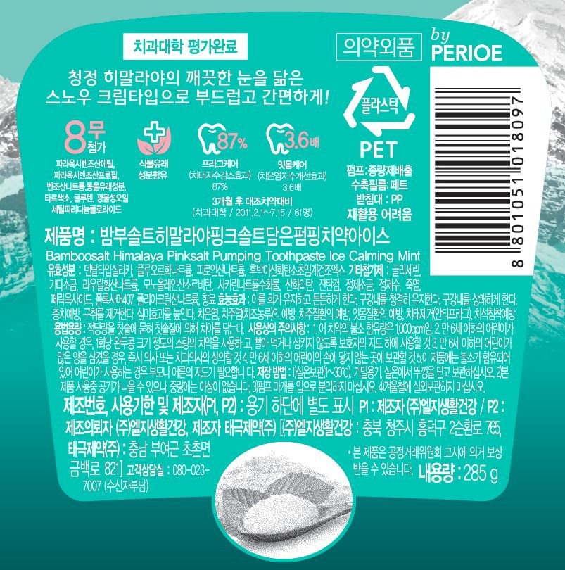 히말라야핑크솔트 담은 펌핑치약 아이스카밍민트 285g