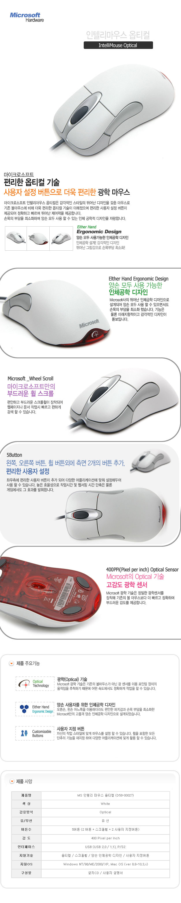 [마이크로소프트] 인텔리마우스 옵티컬 화이트 마우스(콤보)