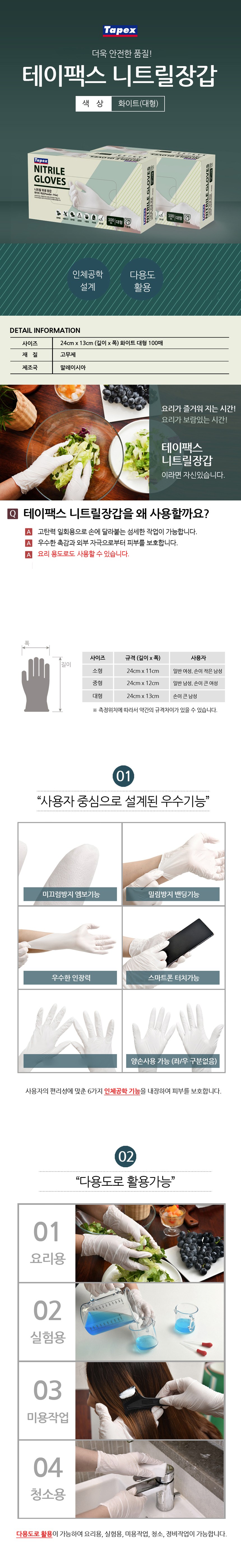 테이팩스 니트릴장갑 화이트 100매 (대형)