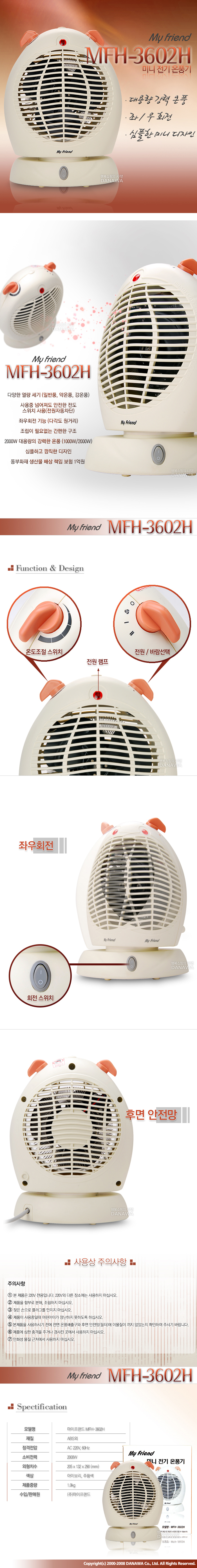 마이프랜드 신개념 좌우회전 열선히터 난방 미니 온풍기[MFH-3602H]