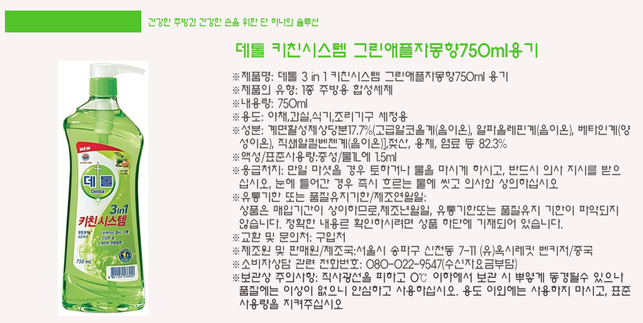 데톨 키친시스템 그린애플&자몽향(750ml) 용기