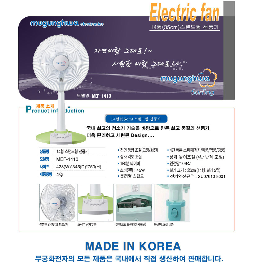 무궁화전자 14" 35cm 투톤칼라 스탠드형 名品 선풍기[MEF-1410]