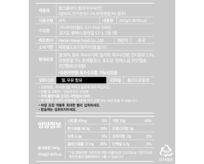 ★[박스] 밀크 클래식 쌀과자 240g x 16봉지