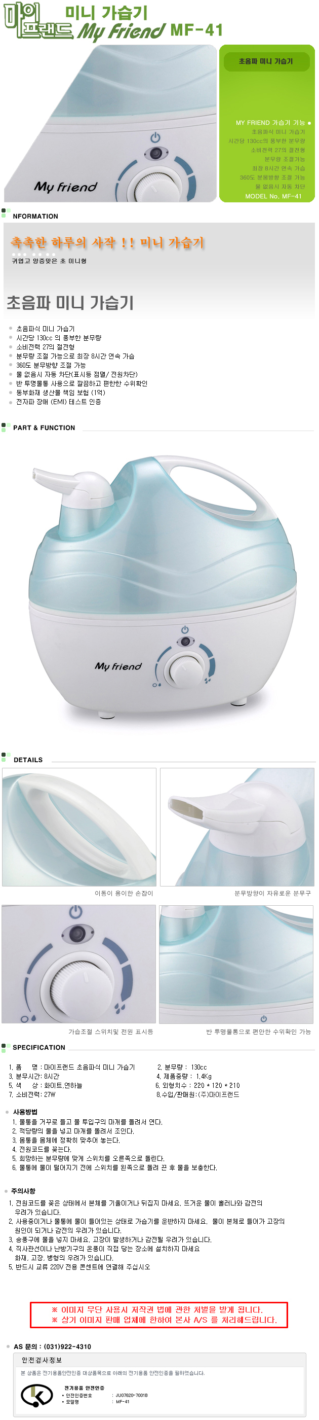 깜찍한 디자인 마이프랜드 초음파식 미니 가습기[MF-41]