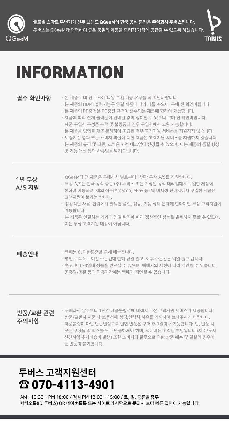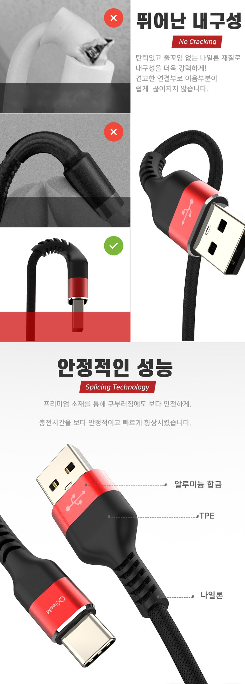 QGeeM 큐짐 USB A TO C 데이터 충전 케이블 1M