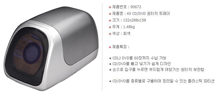 펠로우즈 CD/DVD 원터치트레이60(60장) 90672