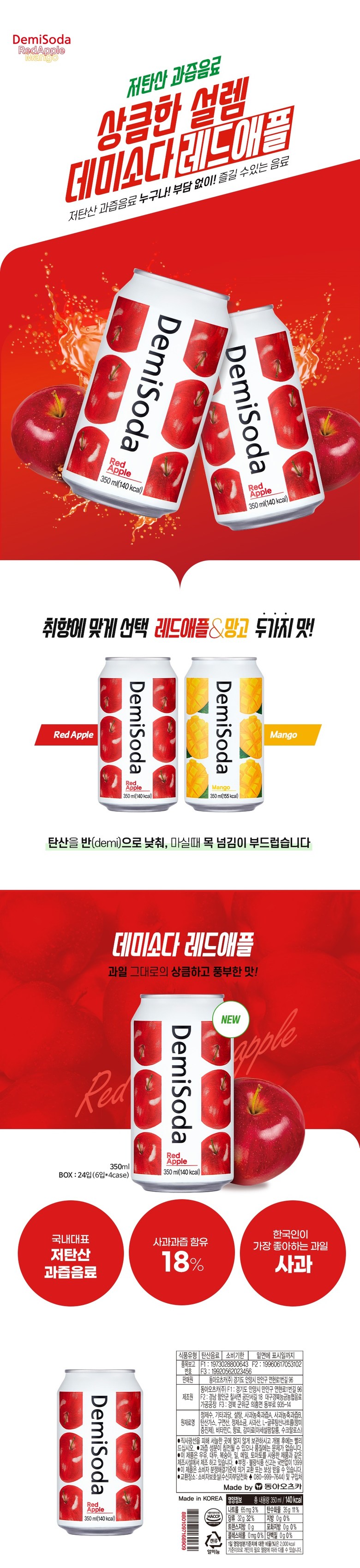 동아오츠카 데미소다 레드애플 350ml x 6캔