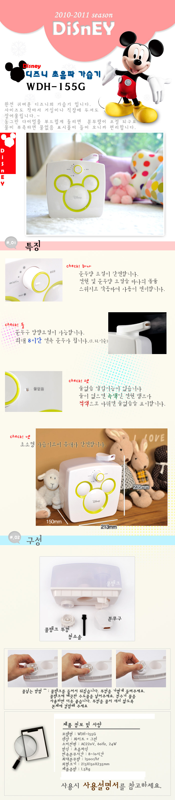 디즈니 초음파 가습기 WDH-155G (그린)
