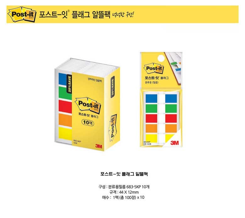 3M 포스트잇 플래그 5컬러 683-5KP-10 (10개입)