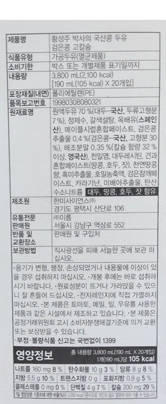 erom 황성주 국산콩두유 검은콩 고칼슘 20개