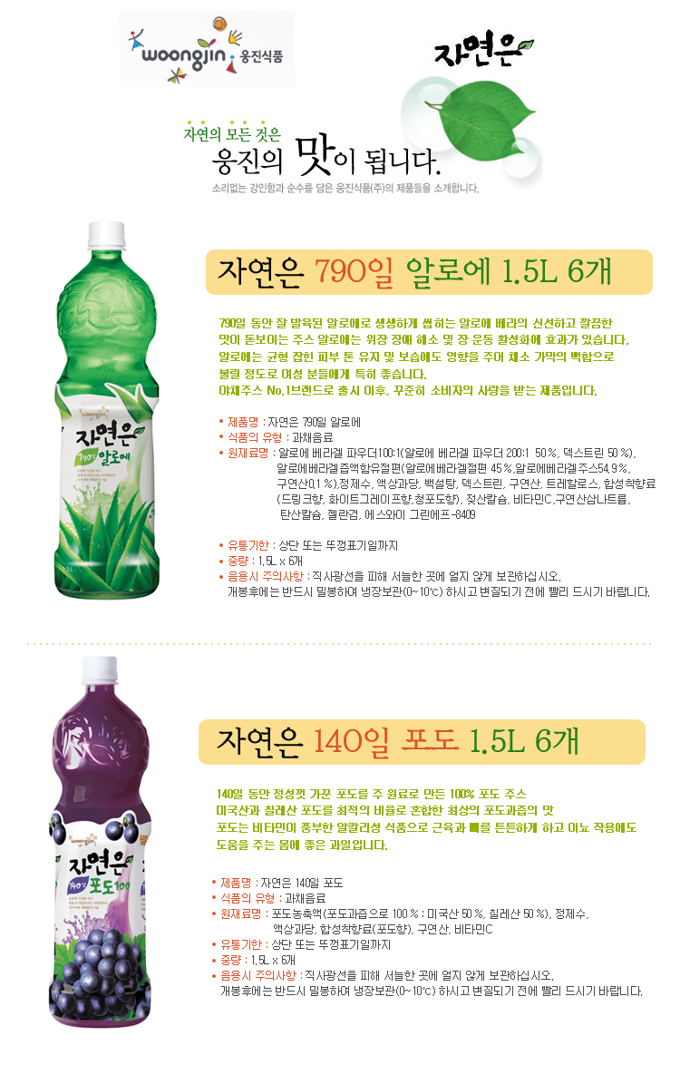 자연은 알로에 1.5Lx6개+자연은 포도 1.5Lx6개