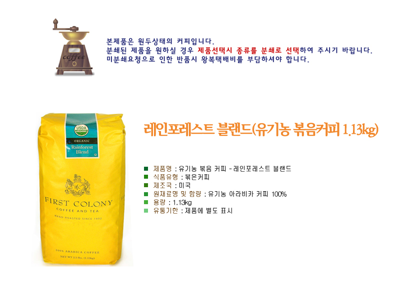 스타벅스레인포레스트 블랜드(유기농볶음커피)1.13kg