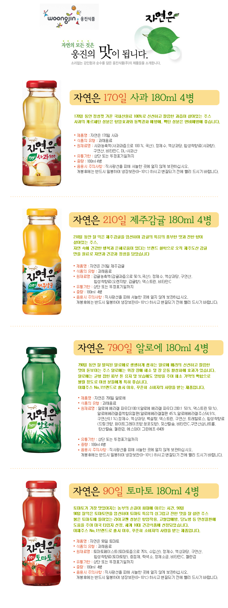 자연은마음가득셋트(사과.감귤.알로에.토마토180ml*16개)