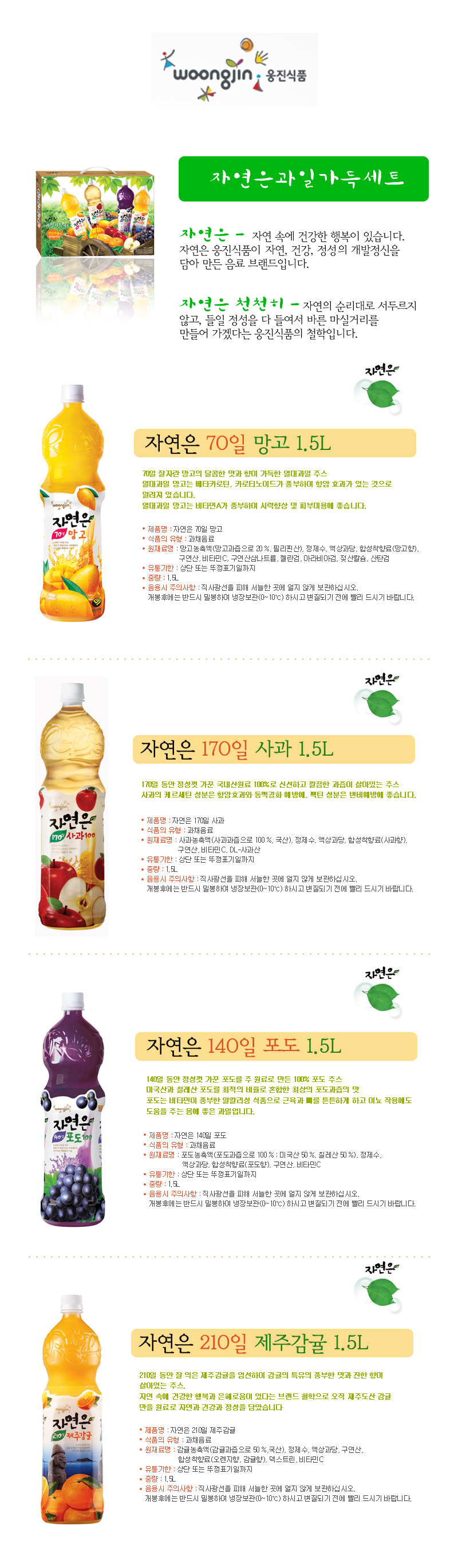 자연은 과일가득선물세트1.5Lx4개(포도+사과+감귤+망고)+키친타올증정
