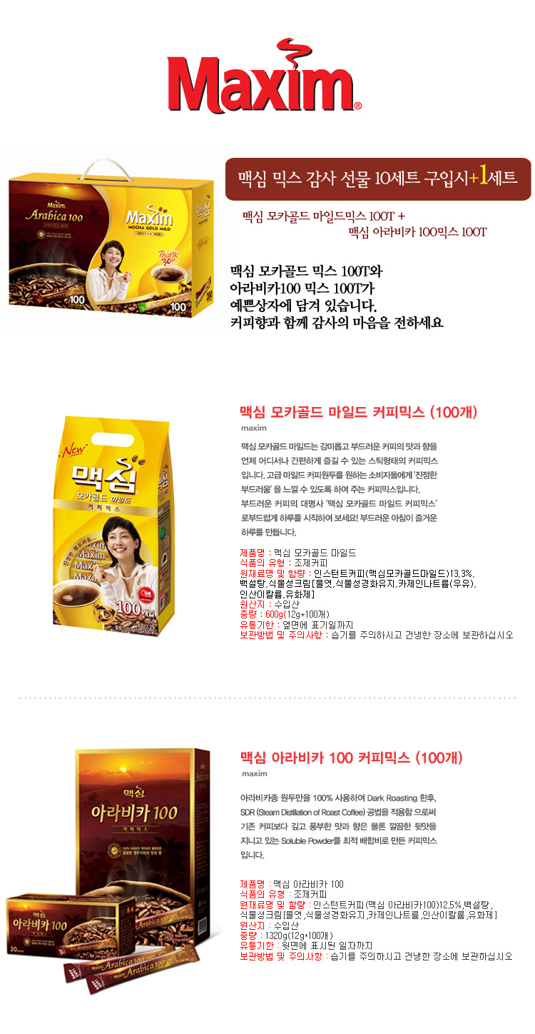 맥심믹스행사세트(모카골드믹스100T+아라비카믹스100T)10+1