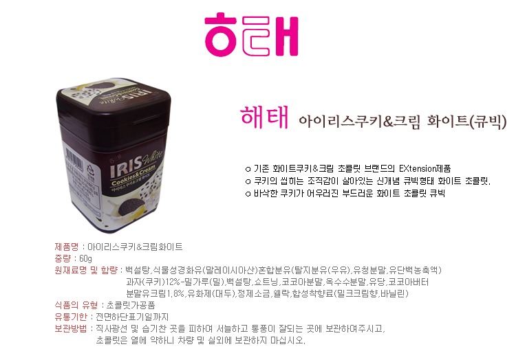 해태아이리스쿠키&크림화이트통