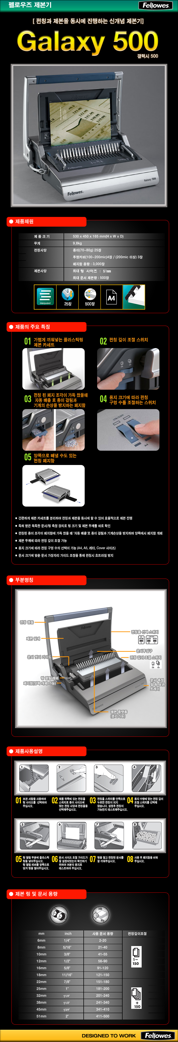 펠로우즈 플라스틱링 제본기 Galaxy 500