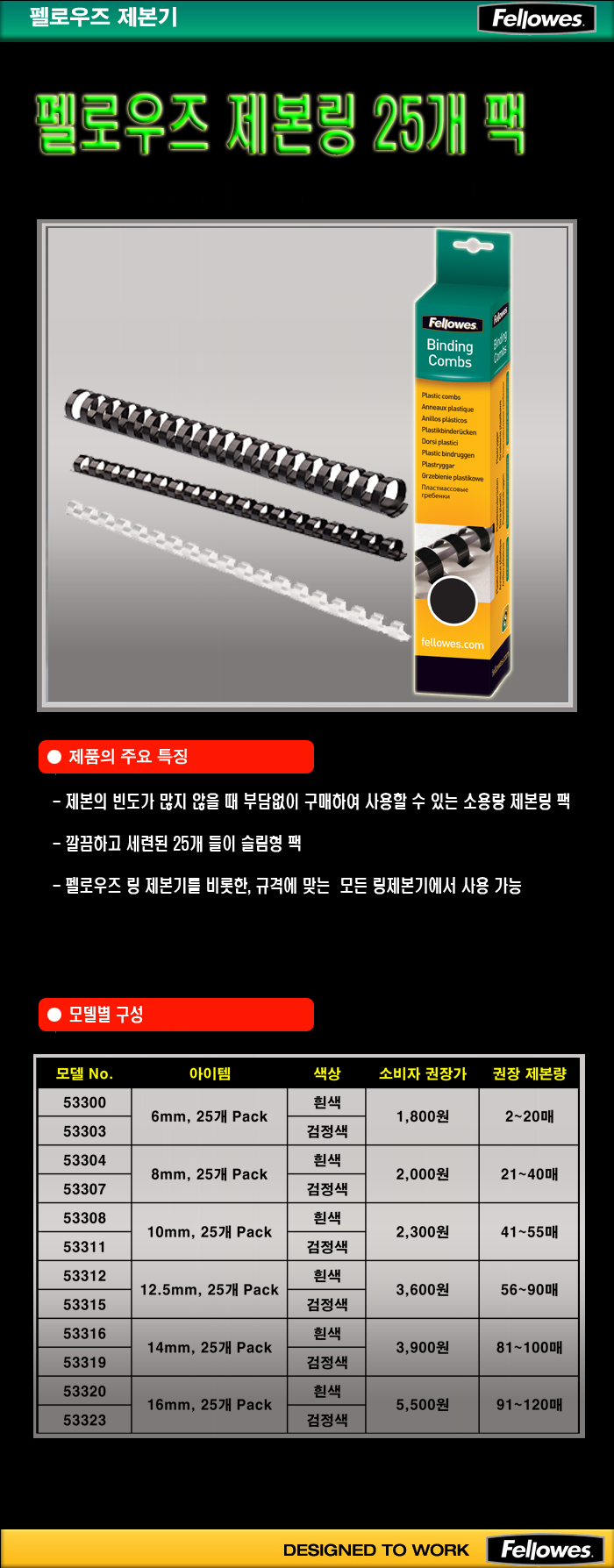 펠로우즈 플라스틱 제본링 6mm(검정) 25입