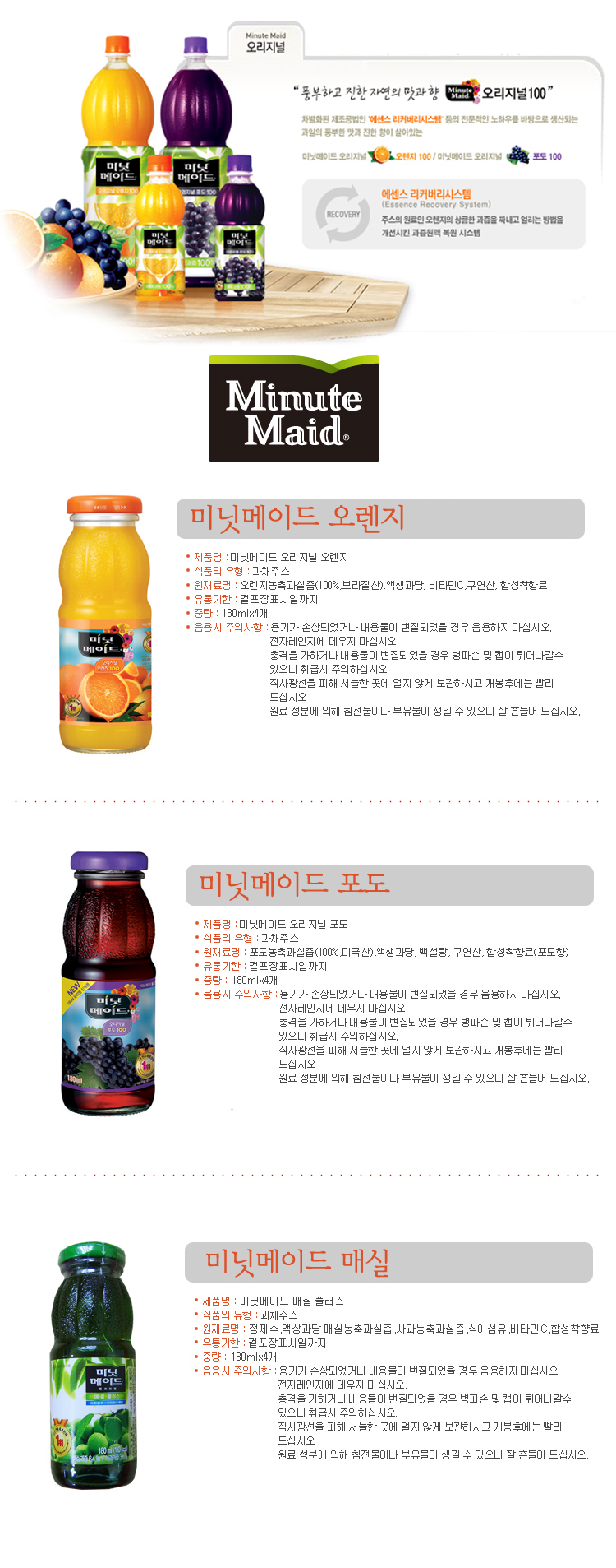 미닛메이드(포도+매실+제주감귤)180ml*12병